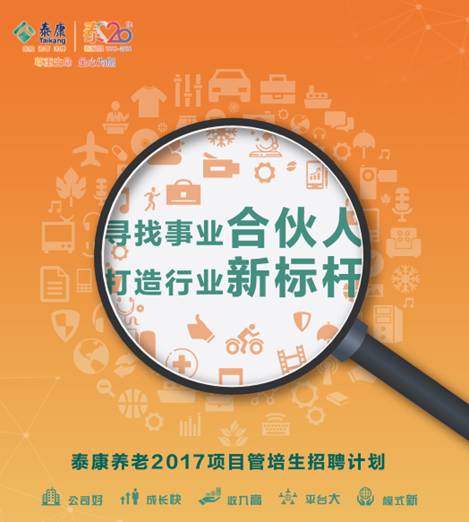 泰康养老北京分公司2017年强势推出项目管培生招聘计划——汇集最优秀、最有激情的应届毕业生,培养项目管理精英。 项目旨在培养未来项目管理精英,10年+行业前辈作为专属导师,为你量身定制职业发展规划,帮助你快速成长。泰康养老是中国团体保险领航者,所服务的客户群体包含众多中国500强企业,高起点、高平台,助力你的未来笑傲职场!富有激情的你还不赶快来战!