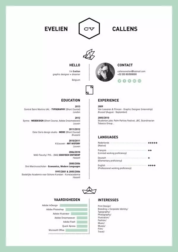 下面是我推荐的一些简历模板给你作为参考,一共18个,有适合事业单位的,有适合互联网科技公司的,也有适合技术人员的,相信无论现在或将来,找工作换工作的时候都能用得到。有些公司这样的简历样式竟然还收费,呵呵了。需要全套模板的童鞋可以关注公众号职优易,回复关键字“简历模板”即可。